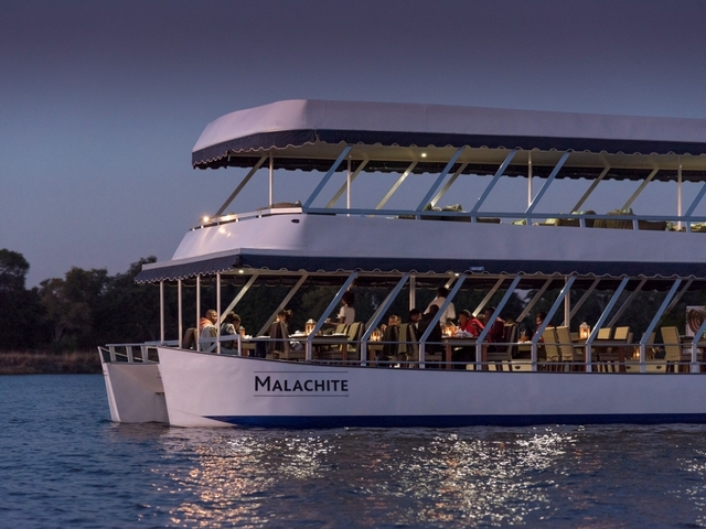 Eine Dinner-Kreuzfahrt auf dem Sambesi ist ein magisches Erlebnis, das Gourmet-Dining mit atemberaubender Landschaft verbindet und einen unvergesslichen Abend auf dem Wasser schafft. Vor der Kulisse des afrikanischen Sonnenuntergangs genießen die Gäste ein köstliches Mahl mit einer Auswahl an schmackhaften Gerichten, inspiriert von lokalen Aromen und internationaler Küche. Mit aufmerksamem Service, exquisiter Küche und der natürlichen Schönheit des Sambesi im Hintergrund verspricht eine Malachite-Dinner-Kreuzfahrt auf dem Sambesi einen bezaubernden Abend, der wahrhaft unvergesslich ist.
