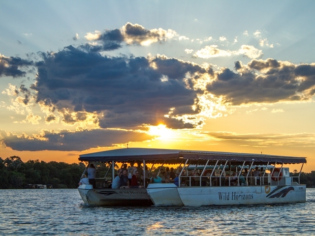 Erkunden Sie die wasserreiche Wildnis mit dem Sprühnebel der Victoriafälle, kleinen Flussinseln und üppiger Vegetation als Kulisse. Während der gesamten Kreuzfahrt werden Canapés und Getränke serviert. Im Laufe des Erlebnisses werden Sie mit dem magischsten Sonnenuntergang, einem afrikanischen Klassiker, verwöhnt, bevor Sie zum Bootsanleger zurückkehren.