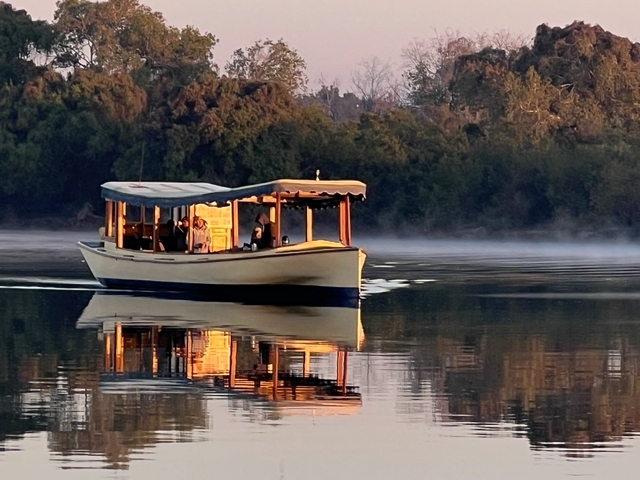 Erleben Sie ultimative Entspannung bei unserer Premium River Safari, wo Eleganz auf Abenteuer trifft, direkt oberhalb der Victoriafälle. Gleiten Sie durch abgelegene Wasserwege in einem stilvollen, speziell entworfenen Boot und genießen Sie Gourmet-Snacks und erstklassigen Service, während Sie den oberen Sambesi in seltener Ruhe erkunden.